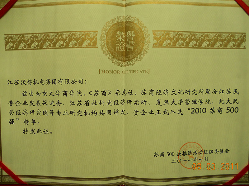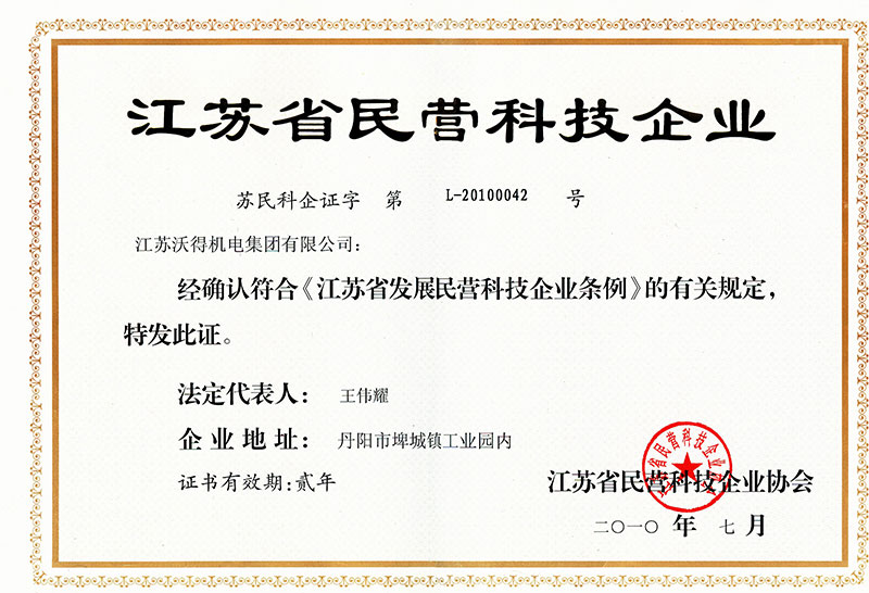 擁有注冊商標證書26個,2006年“WORLD” 獲得江蘇省著名商標稱號、2009年“沃得”商標獲得江蘇省著名商標稱號;